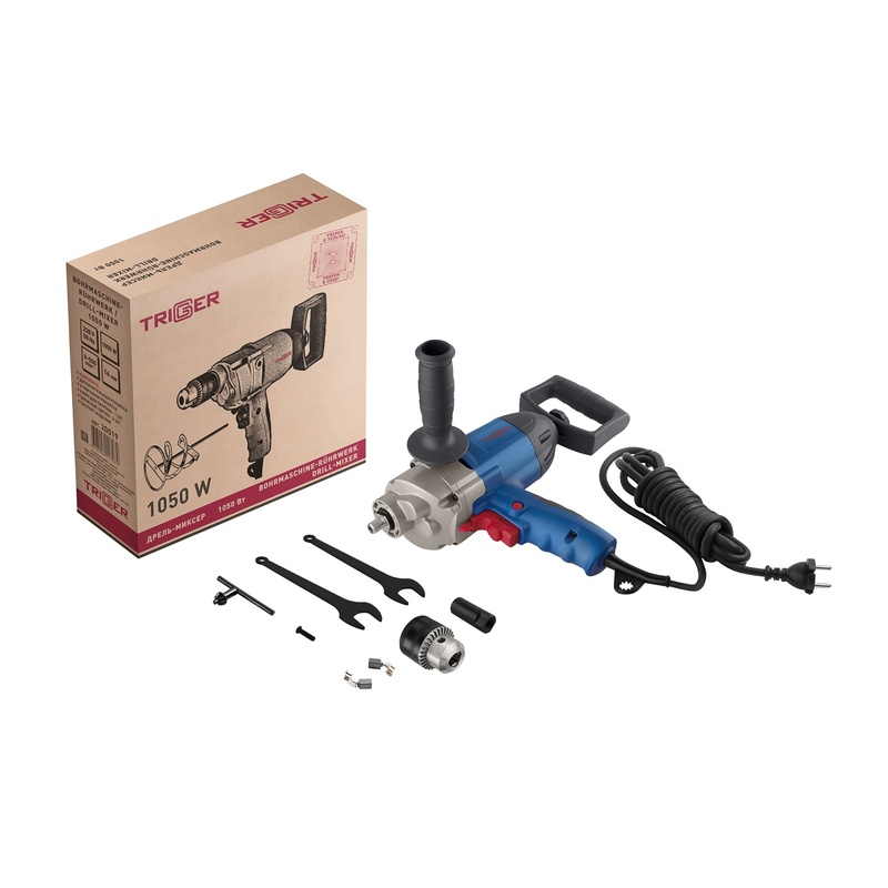 Дрель-миксер сетевой Trigger 20019, 1,05 кВт, 550 об/минуту, ключевой патрон 16 мм, реверс
