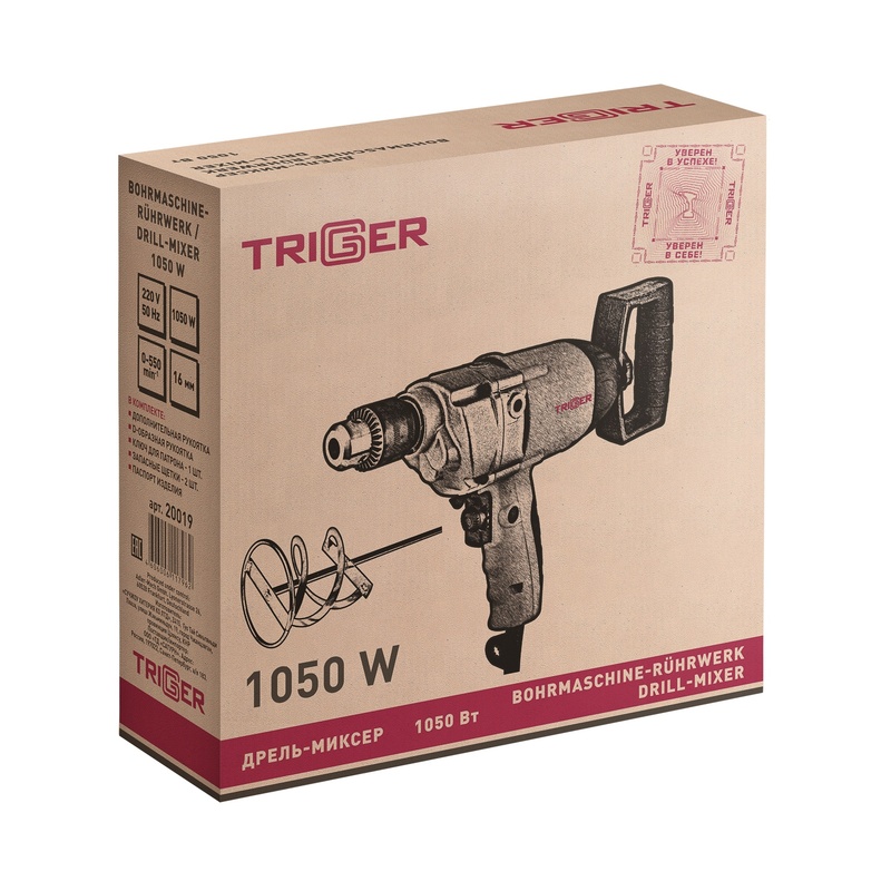 Дрель-миксер сетевой Trigger 20019, 1,05 кВт, 550 об/минуту, ключевой патрон 16 мм, реверс в Сочи