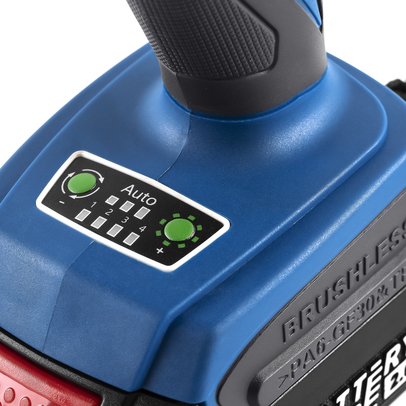 Дрель-шуруповерт Trigger 20111 — сверхмощный бесщеточный шуруповерт для продолжительной работы. Электродвигатель с КПД 90% бережно расходует заряд батареи с обеспечением крутящего момента до 70 Нм. Не боится кратковременных перегрузок. Отсутствие щеточного узла приводит к уменьшению размера инструмента и увеличивает ресурс двигателя. Металлический 13 мм патрон с функцией Autofix позволяет заменять оснастку одной рукой и определять усилие ее фиксации по характерным щелчкам, а также использовать оснастку больших размеров.