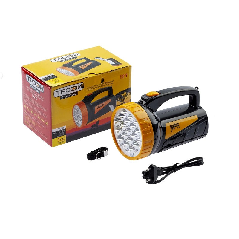 Фонарь-прожектор Трофи TSP19, 19LED+18LED, 2.0А*ч SLA