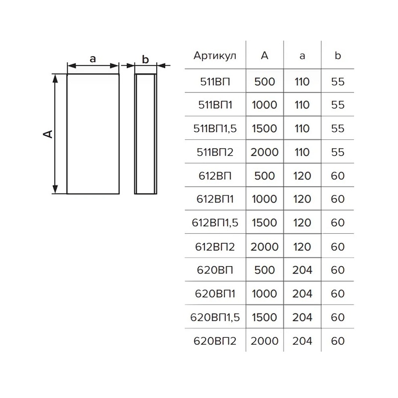 Канал (воздуховод) плоский Era 620ВП2, 204х60 мм (2 м), пластик
