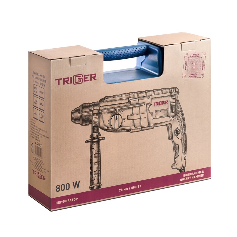 Перфоратор сетевой Trigger 20027, SDS-plus 28 мм 800 Вт 3 режима 3,2 Дж, L кабеля=4 м,кейс в Сочи