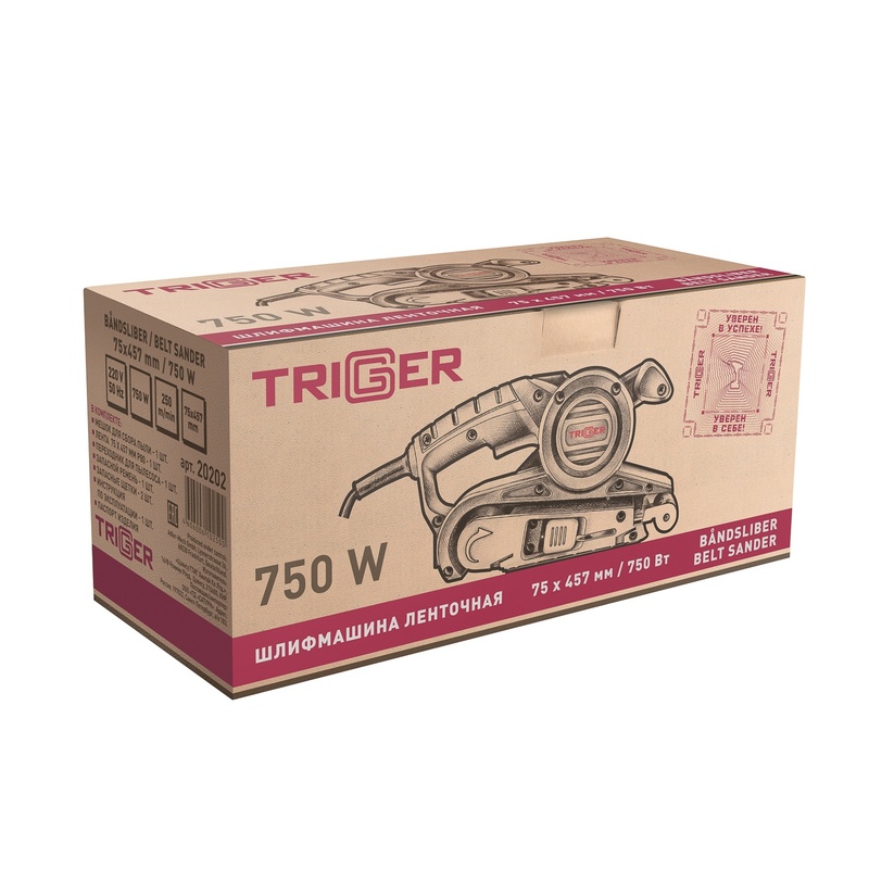 Шлифмашина ленточная сетевая Trigger 20202, 0,75 кВт, 75х457 мм, L кабеля=3 м