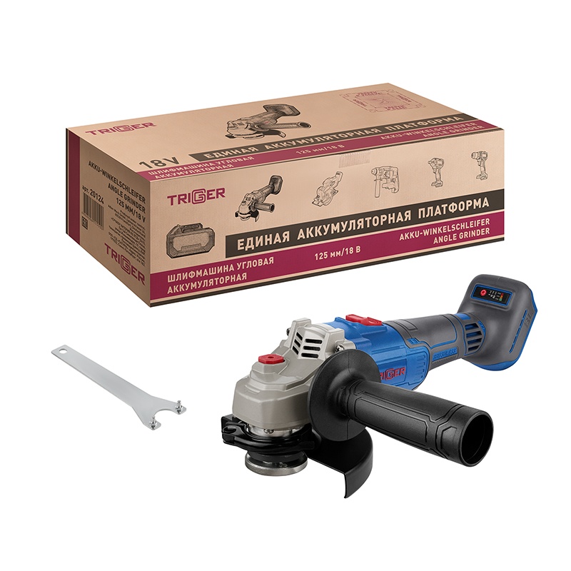 Шлифмашина угловая УШМ аккумуляторная Trigger 20124 ЕАП 18В, Li-ion d=125мм, без АКБ и ЗУ, бесщеточная