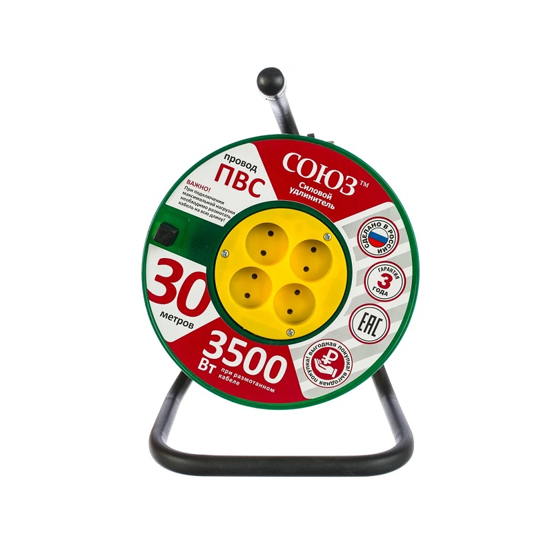 Удлинитель силовой на катушке 481S-3303, ПВС, 3500 Вт, б/з, 30 м