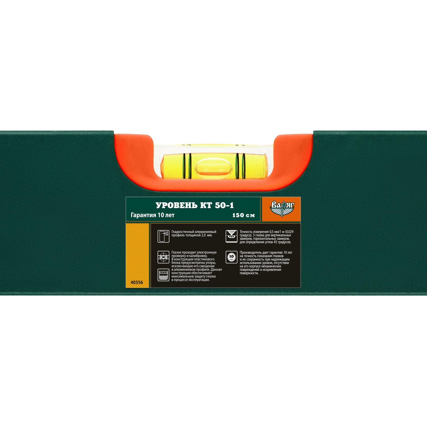 Уровень Варяг 40356 КТ 50-1, 3 глазка, 1500 мм
