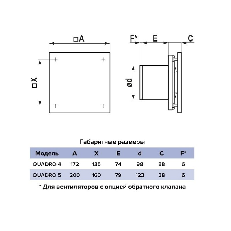 Вентилятор вытяжной Era 100 Quadro 4, 90 м3/ч